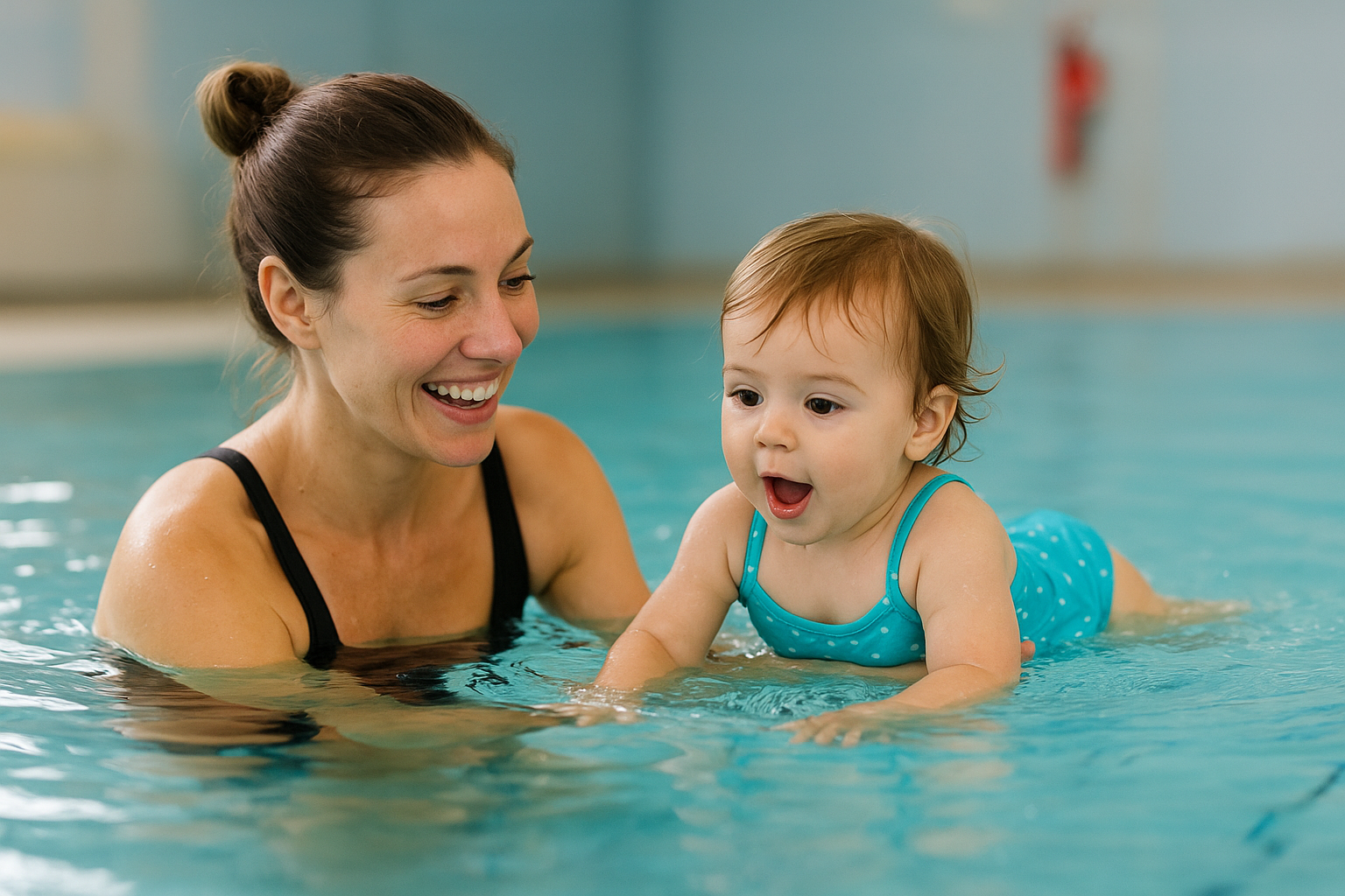 Bereits ab einem Alter von 3 Monaten können Babys im Eltern-Kind-Schwimmen spielerisch an das Element Wasser herangeführt werden. Im Vordergrund stehen Spiel, Spaß und Bewegung.